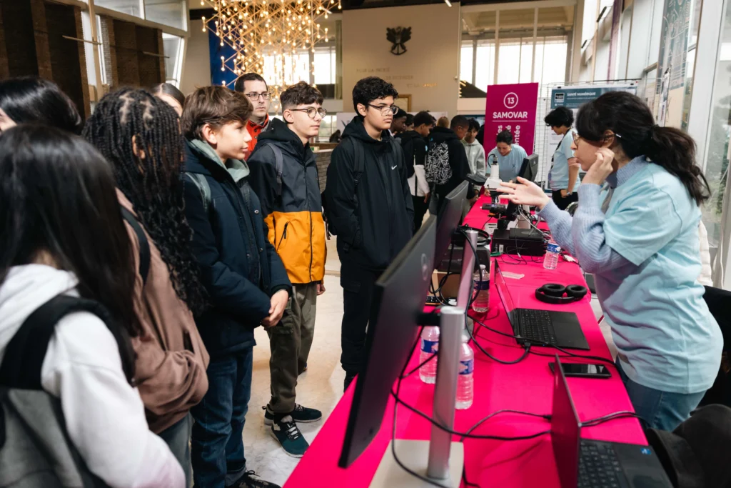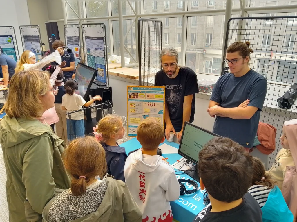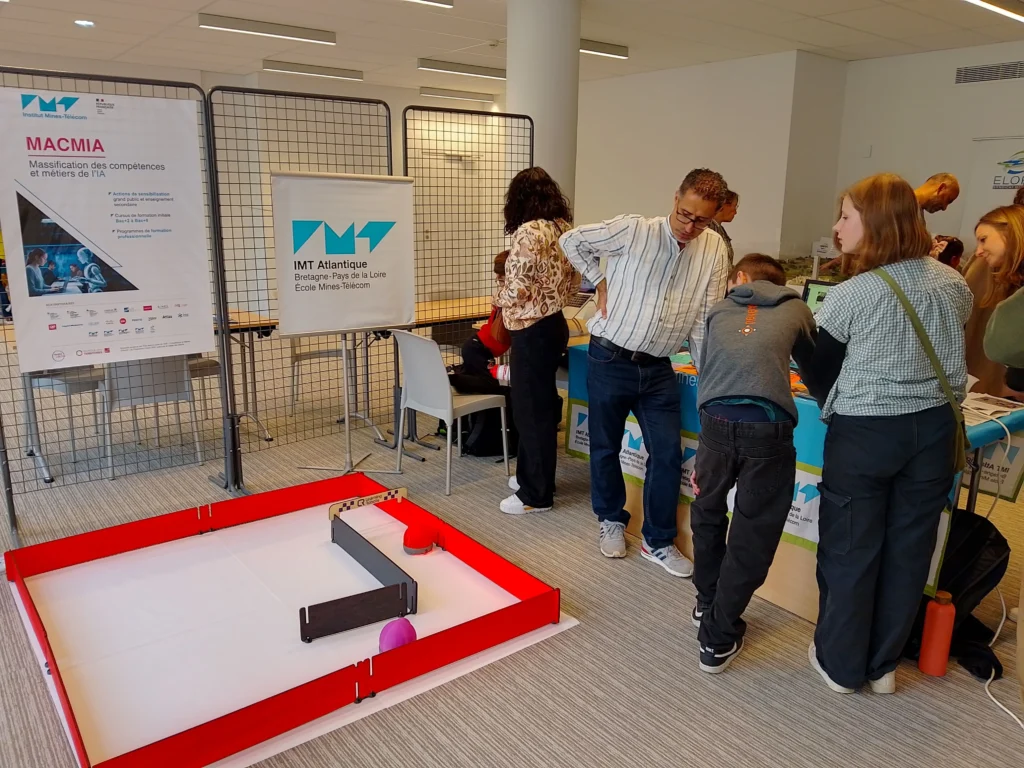 - Sur le campus d’IMT Nord Europe, les collégiens et lycéens ont exploré l’intelligence artificielle sous toutes ses facettes, comme levier de progrès humain. Six ateliers leur ont permis d’en saisir les applications concrètes : concevoir des pièces complexes grâce à l’IA générative, optimiser les écoulements de fluides avec l’IA frugale, détecter les polluants atmosphériques, piloter des robots dans des environnements inconnus, analyser les mouvements humains via des semelles connectées, ou encore garantir la sécurité de véhicules ferroviaires autonomes dans le projet Ecotrain. À cela s’ajoutait un stand de réalité virtuelle et de jeux sérieux pour explorer l’apprentissage par simulation et immersion.