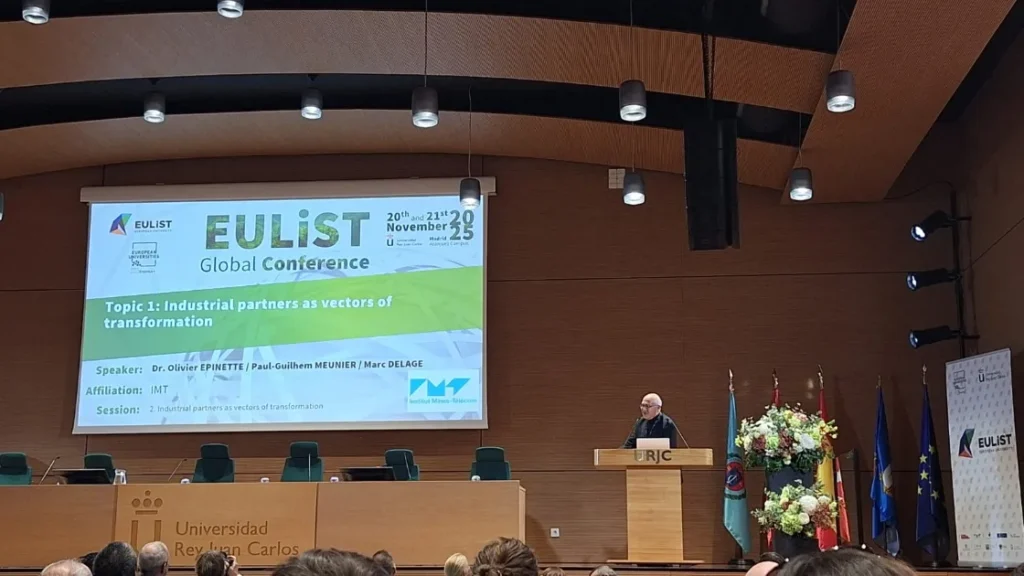 Les 20 et 21 novembre 2025, l’Institut Mines-Télécom a activement participé à la Global Conference EULiST, organisée à Aranjuez à l’université du Roi Juan Carlos, en région de Madrid sous le thème « Co-creating Sustainable Solutions for Climate-Resilient Societies ». Cette rencontre internationale, dédiée à la durabilité, a rassemblé les établissements partenaires de l’université européenne EULiST autour d’un objectif commun : transformer les ambitions européennes en réalisations concrètes.